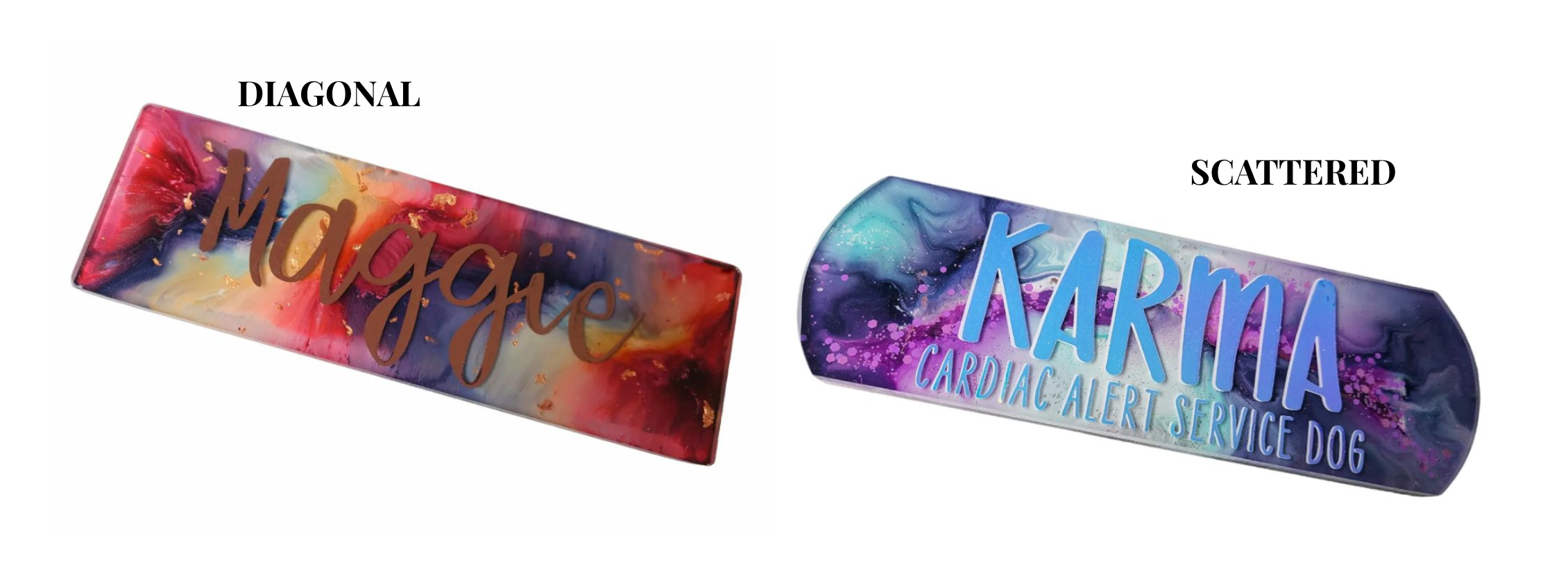 *If there is a specific tag you see on my page, or have a specific idea in mind I can try my best to re-create the tag or make what you have in mind, but I cannot gaurantee that I will be able to. Once the inks are placed into the resin, there's only so much I can do to "help" them. The inks have a mind of their own and kind of "dance" and do what they want.