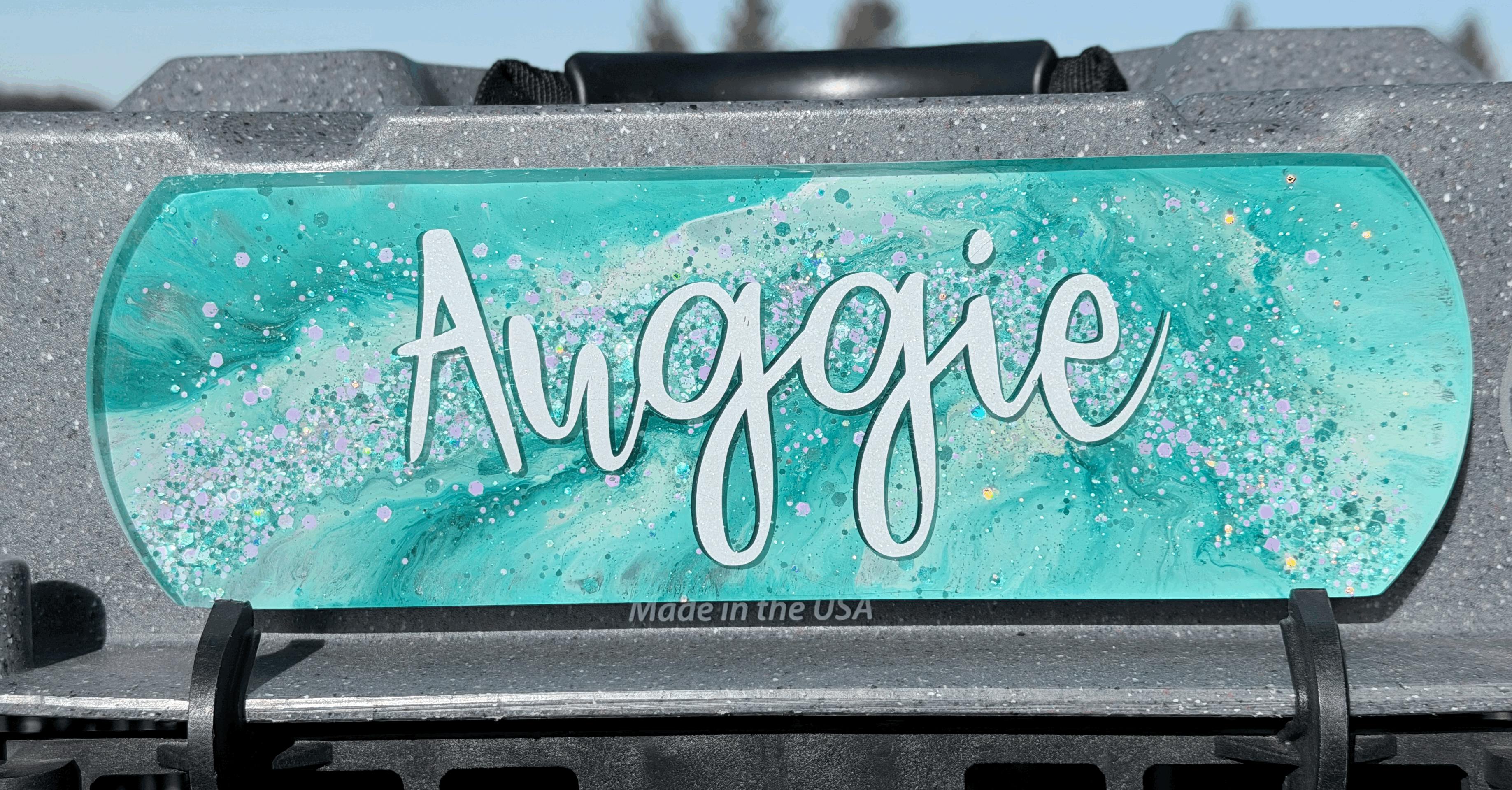 **Please visit our "ENVISION YOUR TAG" page to look at the ink colors chart, glitter, font & vinyls and for more information regarding custom tags.